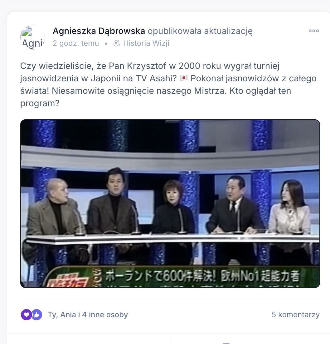 Czy wiedzieliście, że Pan Krzysztof w 2000 roku wygrał turniej jasnowidzenia w Japonii na TV Asahi? 🇯🇵 Pokonał jasnowidzów z całego świata! Niesamowite osiągnięcie naszego Mistrza. Kto oglądał ten program?
